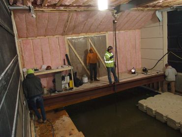 A TCV Development Design-Build 2018 project. After a 400 gallon fish tank exploded on the 2nd floor of this private residence, the Owners came to TCV Development to repair the damage left by the salt water and expand their living space. TCV designed a recreation room under the house and over the water.